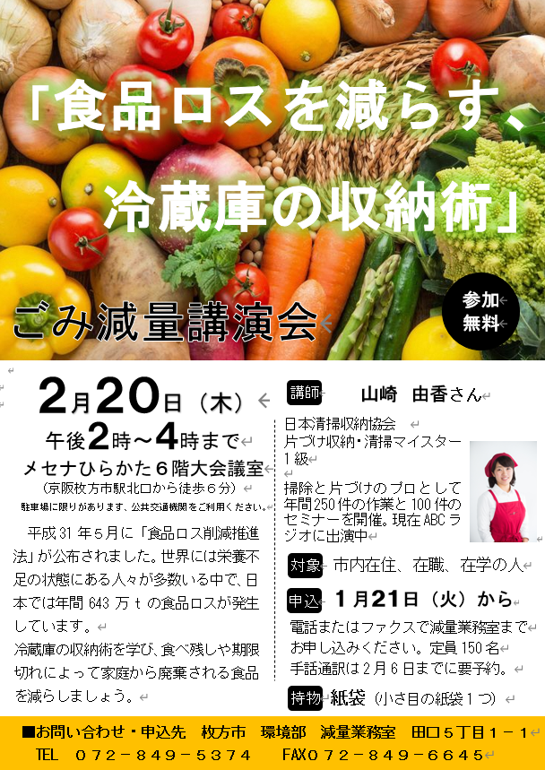 申し込み先:枚方市 環境部減量業務室 072-849-5374
