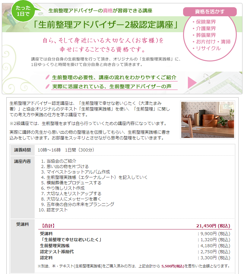 申し込み先:生前整理普及協会