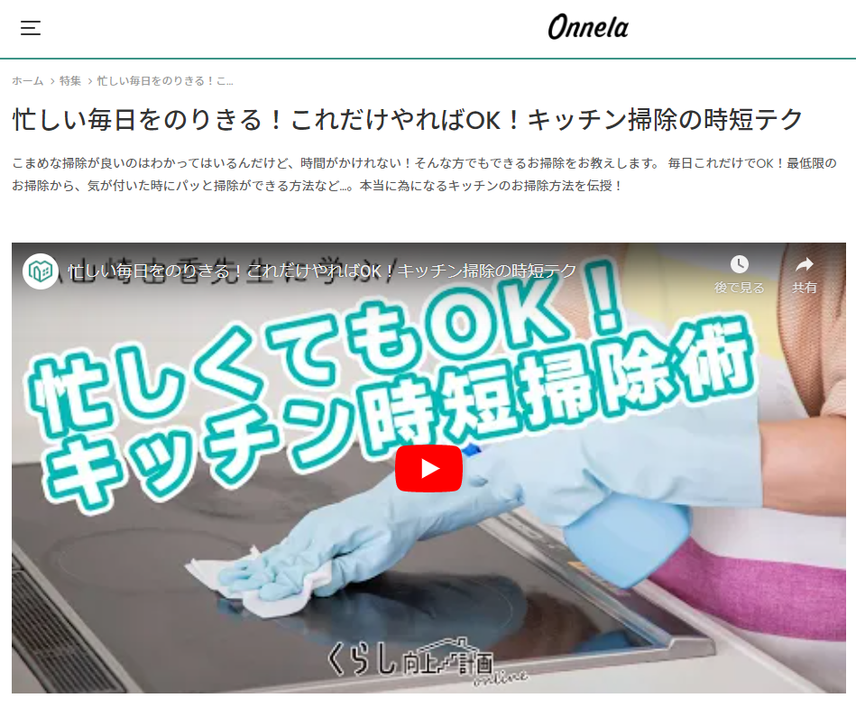 くらし向上計画×onnela「忙しい毎日をのりきる!これだけやればOK!キッチン掃除の時短テク「」