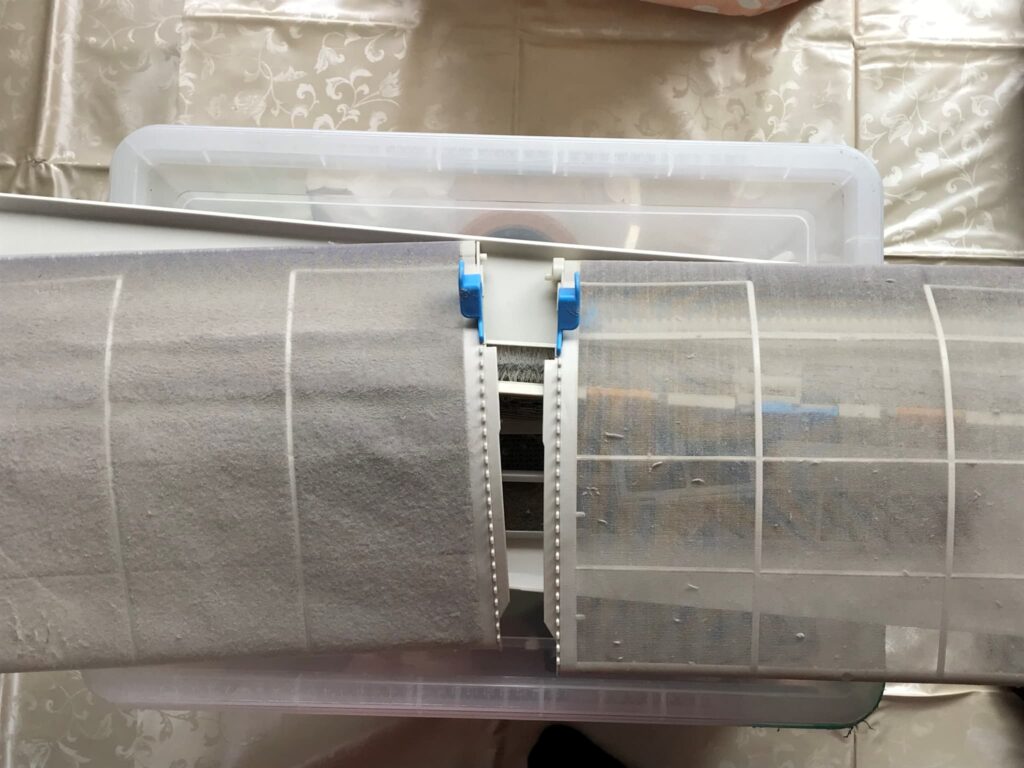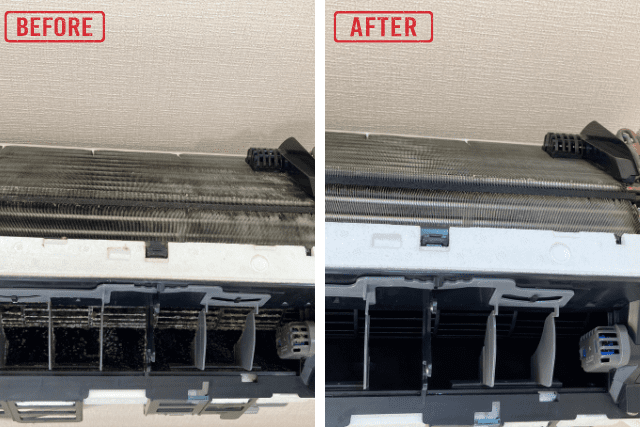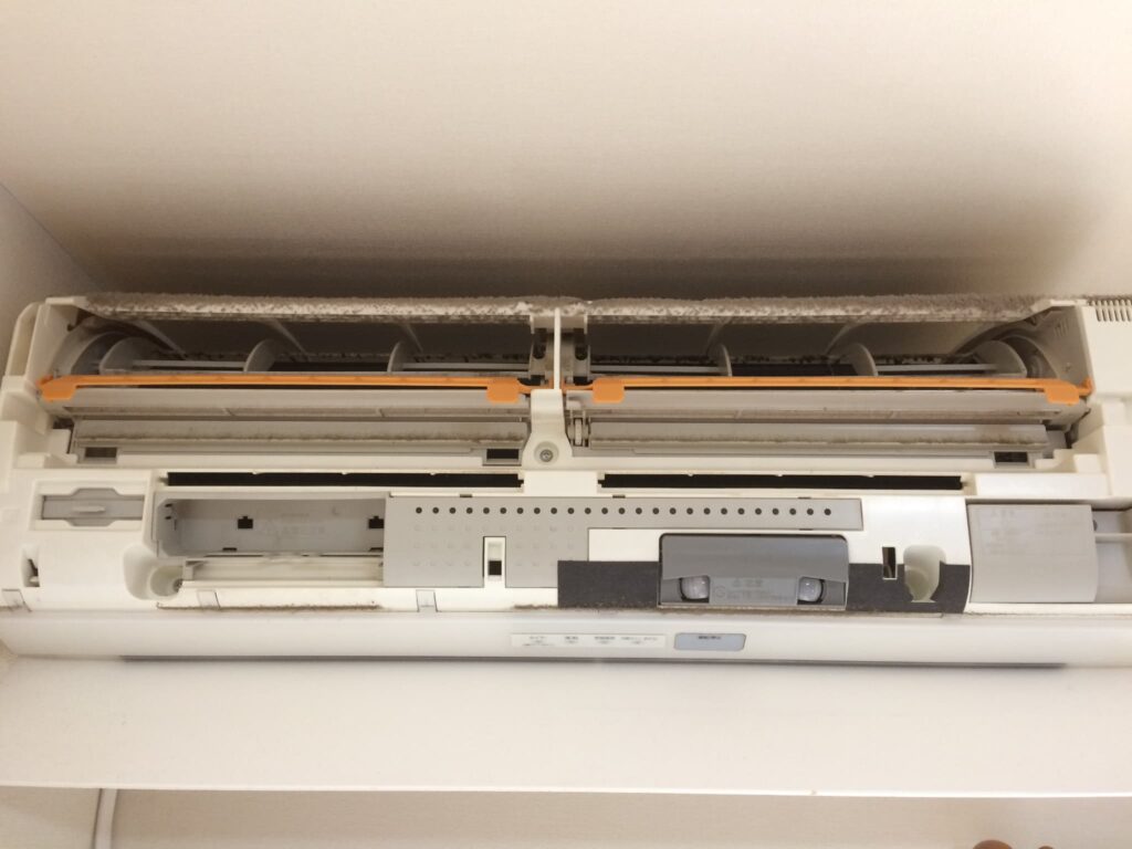 この写真はリビングに設置しているエアコンの3年間の汚れです。