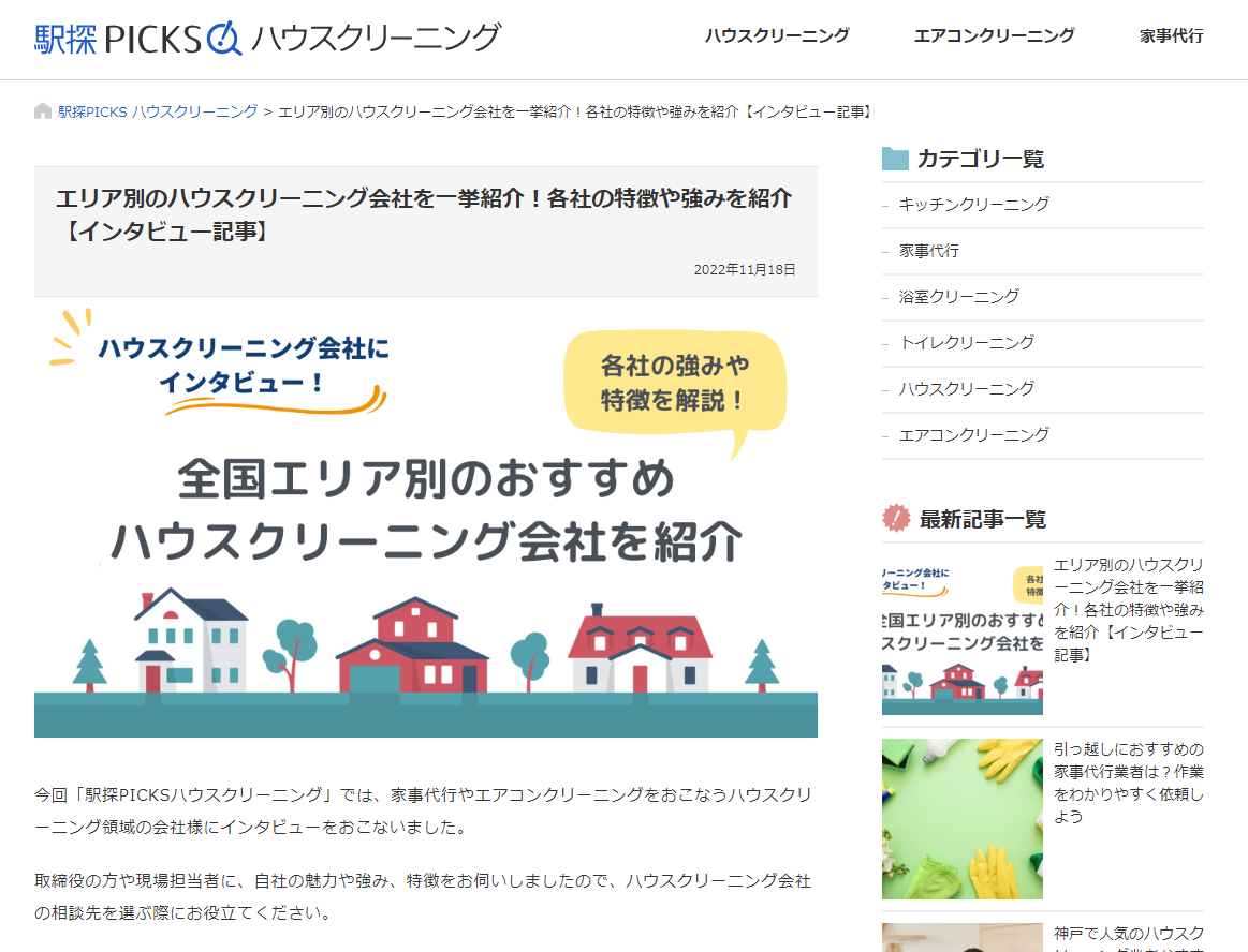 駅探PICKS に関西(大阪)でおすすめのハウスクリーニング店と紹介されました!