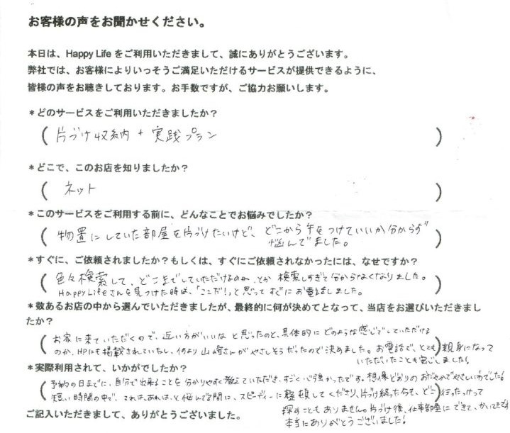 片づけ収納+実践プランをご利用 お客様の声サービス(箕面市)